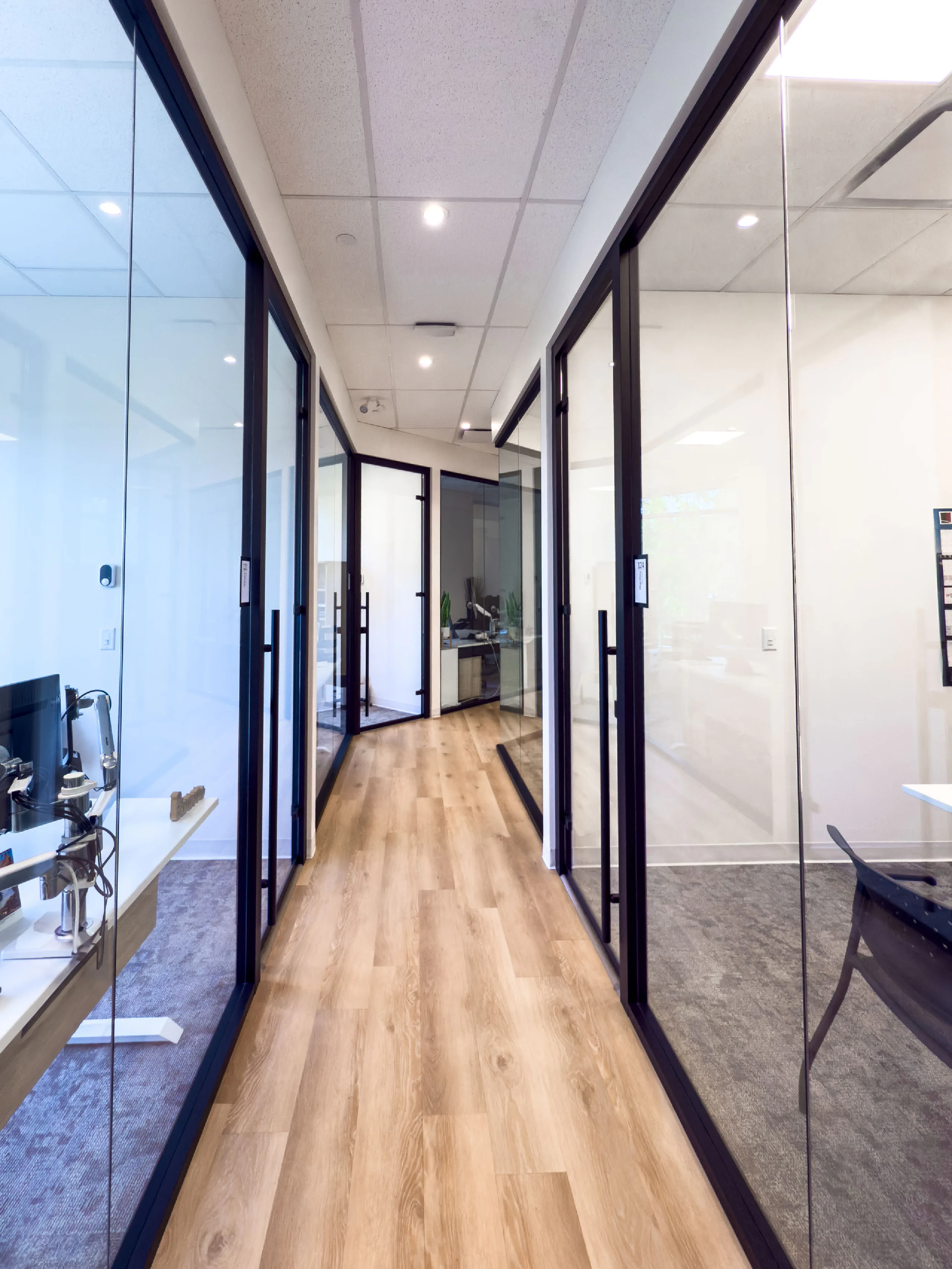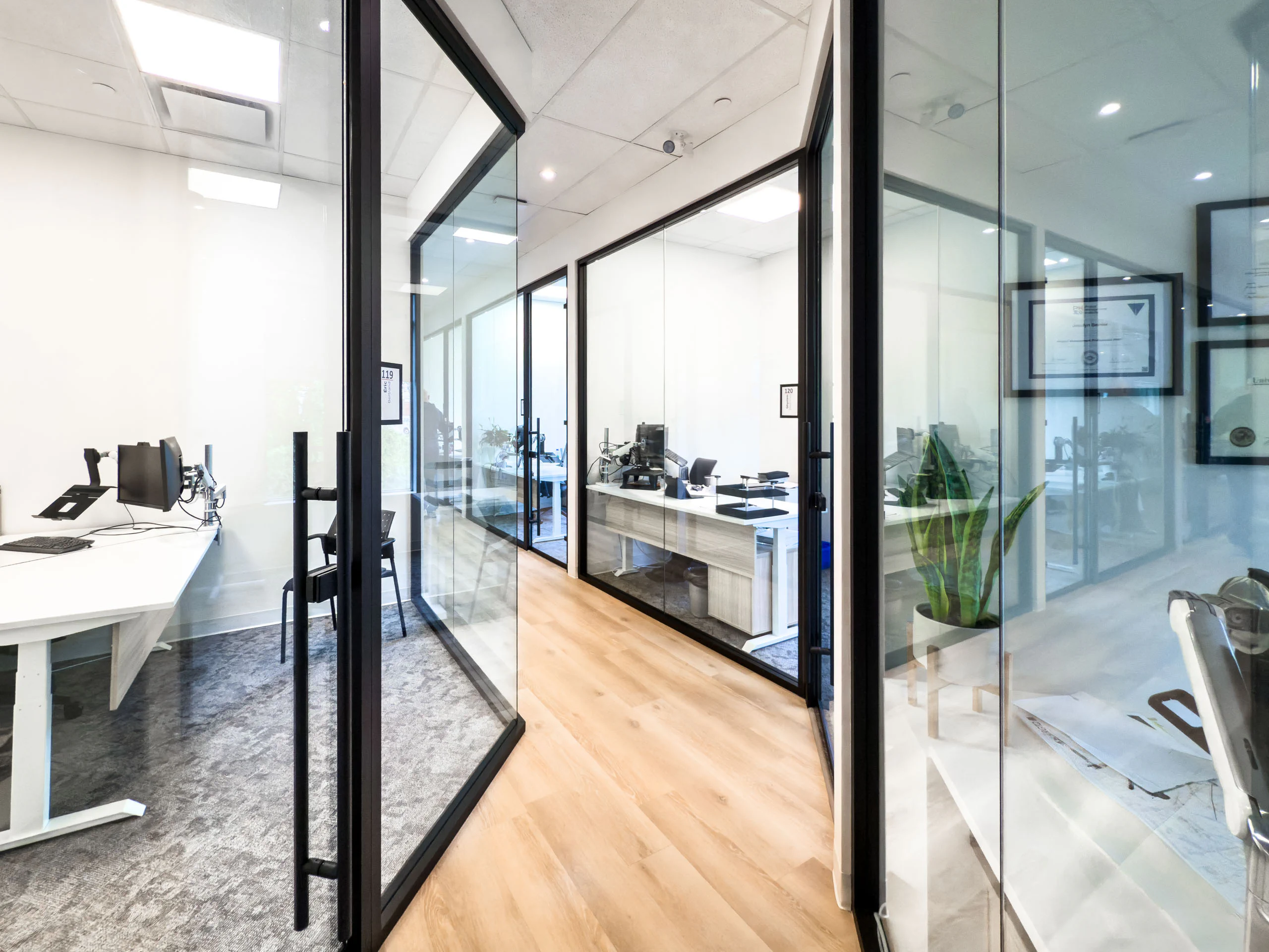 Centré - Portes de verre 100% battantes et coulissantes.